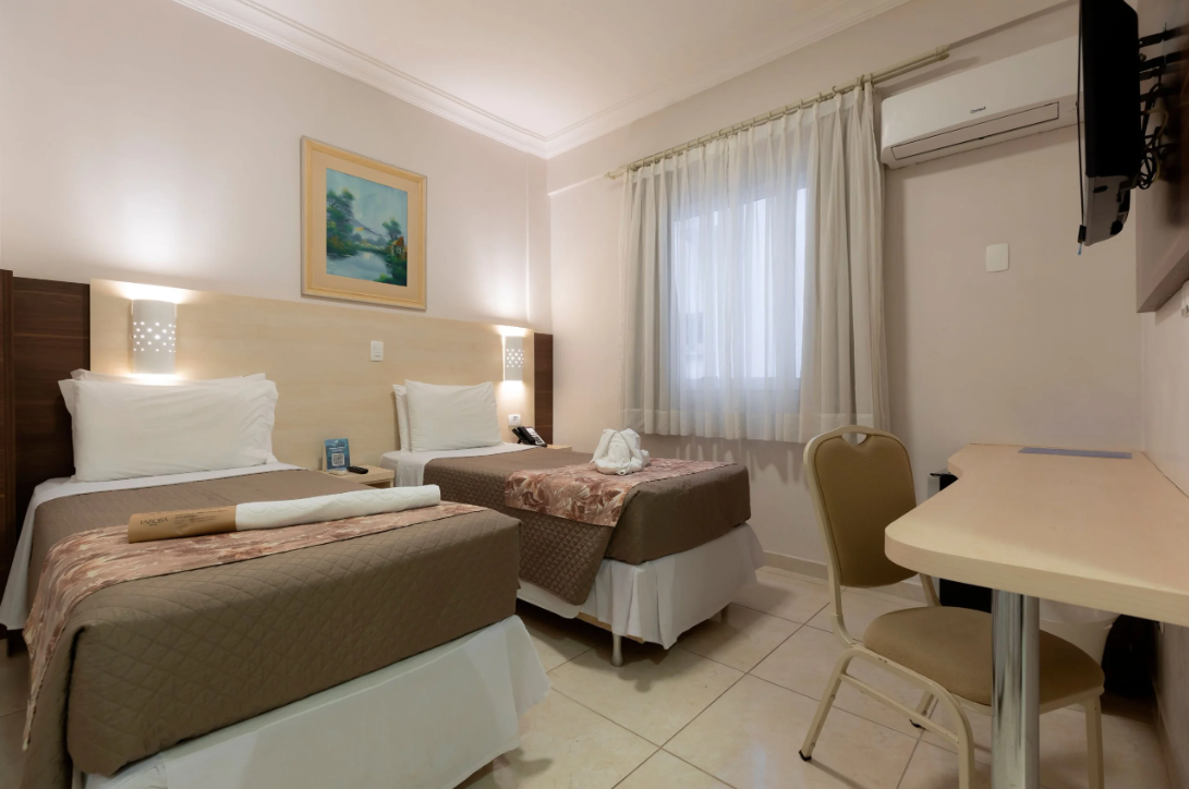 Tarobá Hotel is a traditional hotel located in the center of Foz do Iguaçu. Recently, it has undergone a complete renovation. It has 176 cozy apartments, equipped with a Box bed, minibar, cable TV, air conditioning, telephone, hairdryer, digital safe and electronic locks. It is a non-smoking hotel.